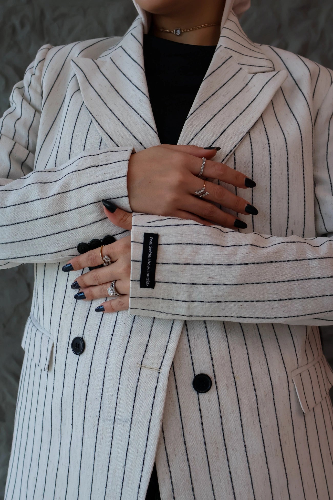 White Linen Pinstripe Blazer
