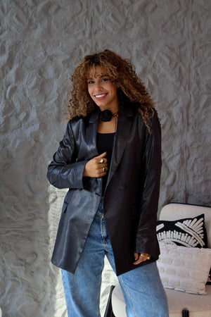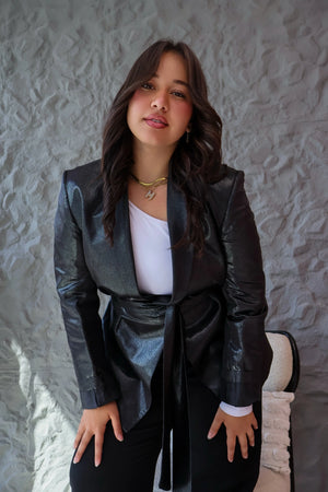 Elegant & Bold – Black Satin Blazer for Special Occasions.