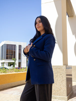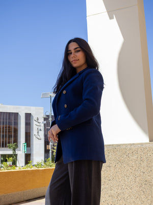 Effortless & Refined — A Navy Wool Blazer with Modern Sophistication.
