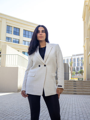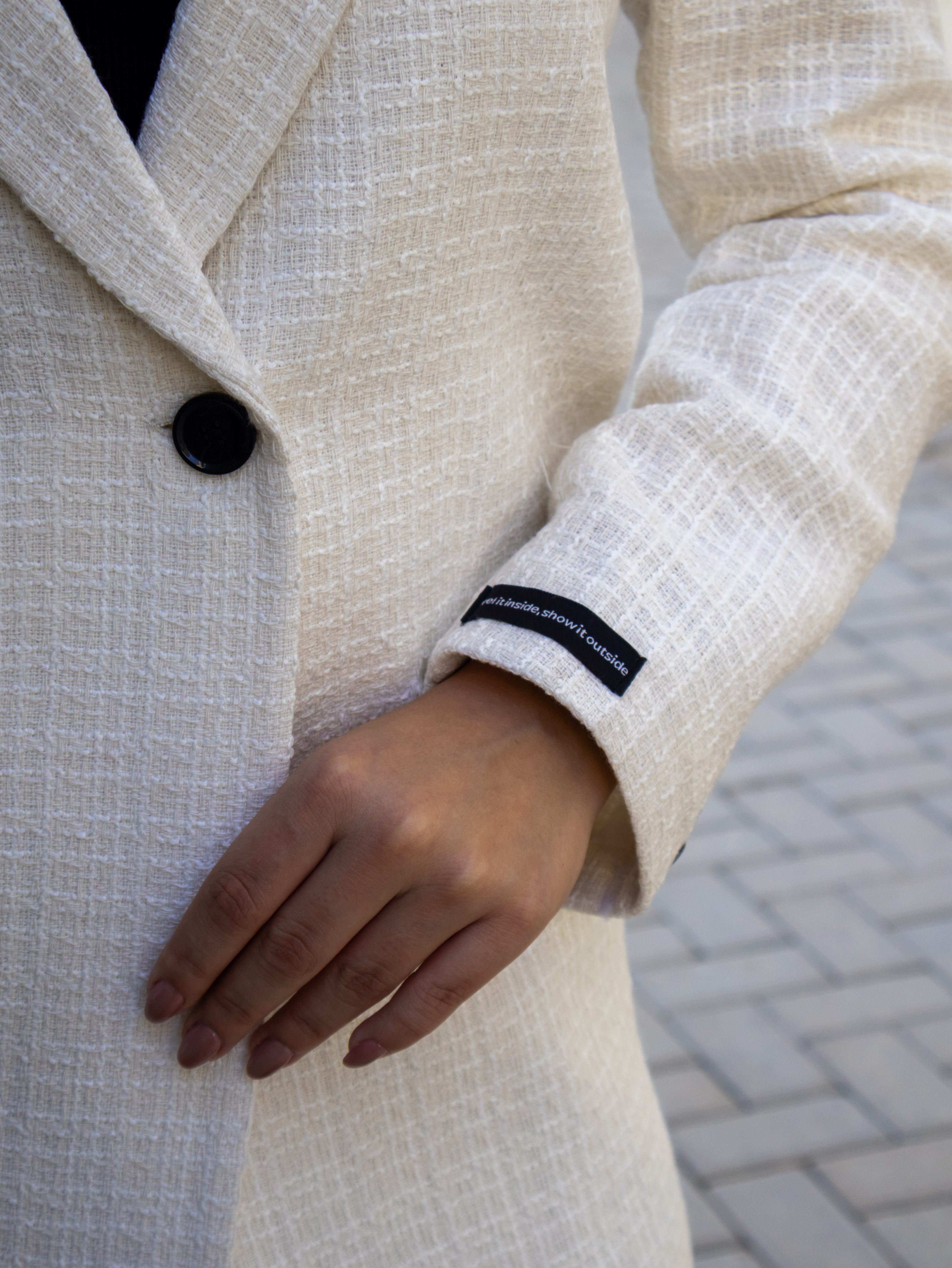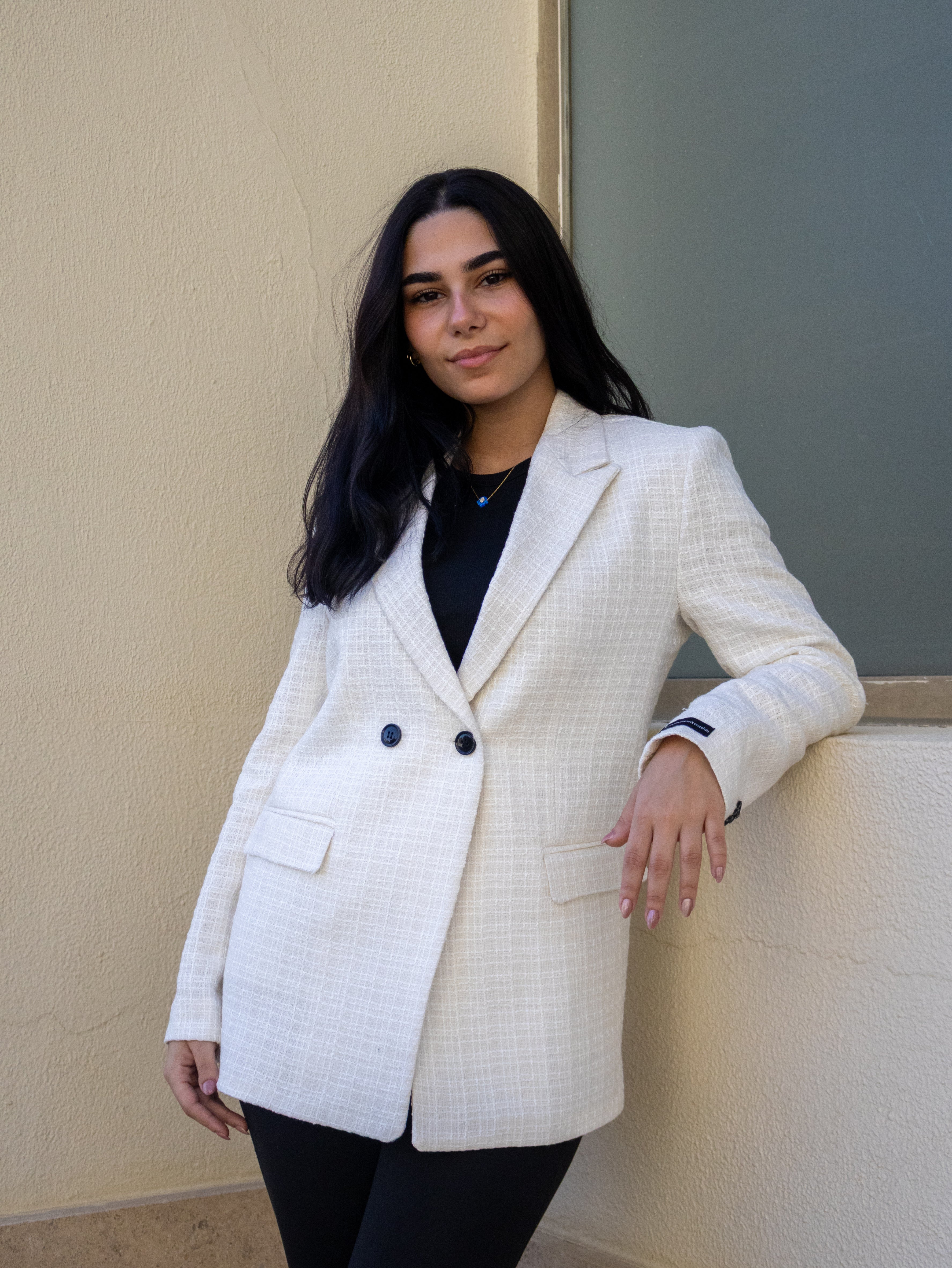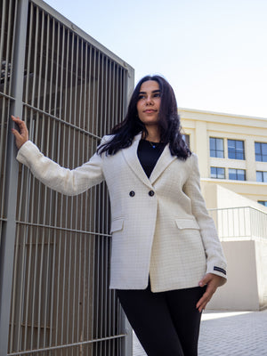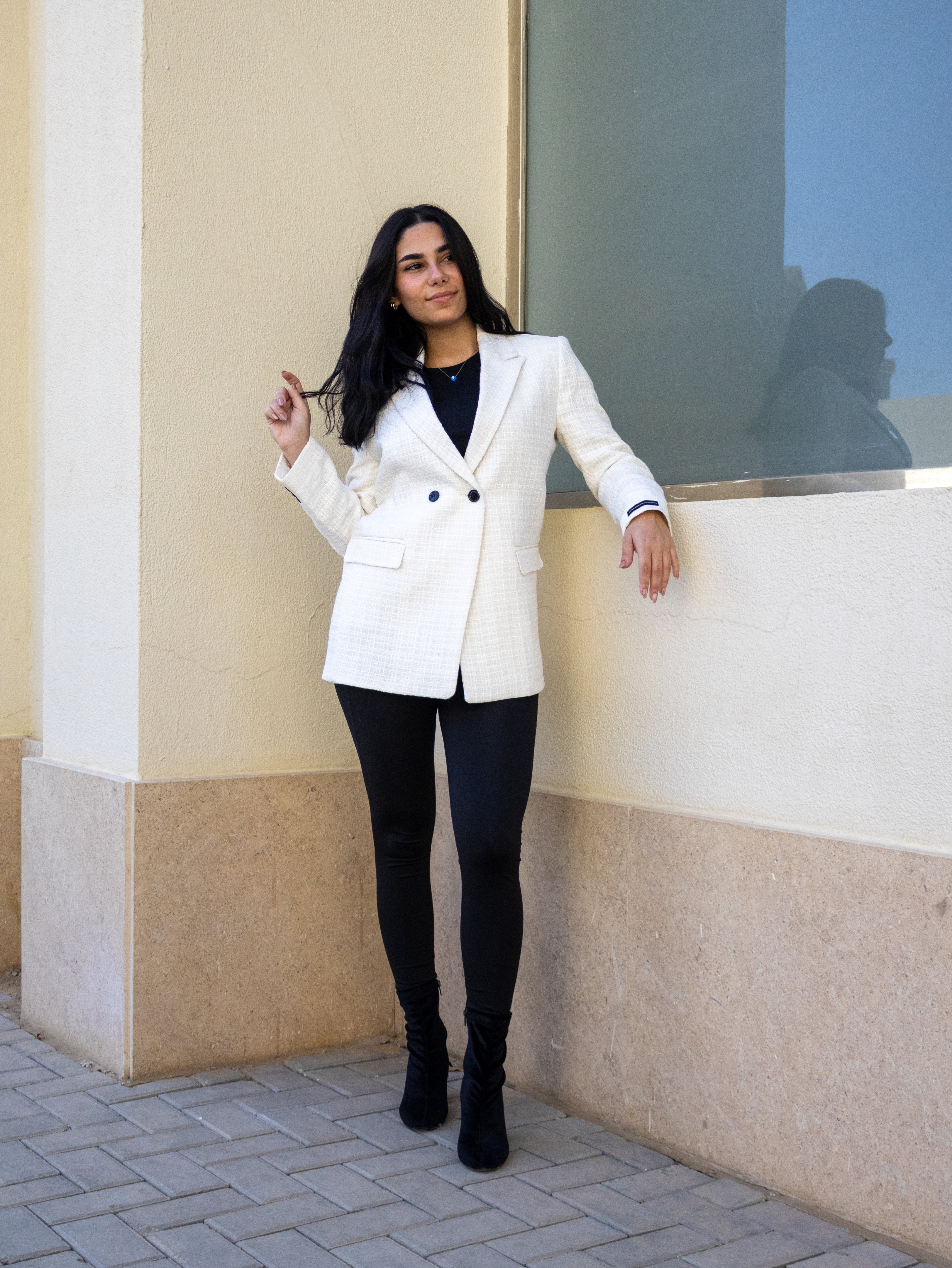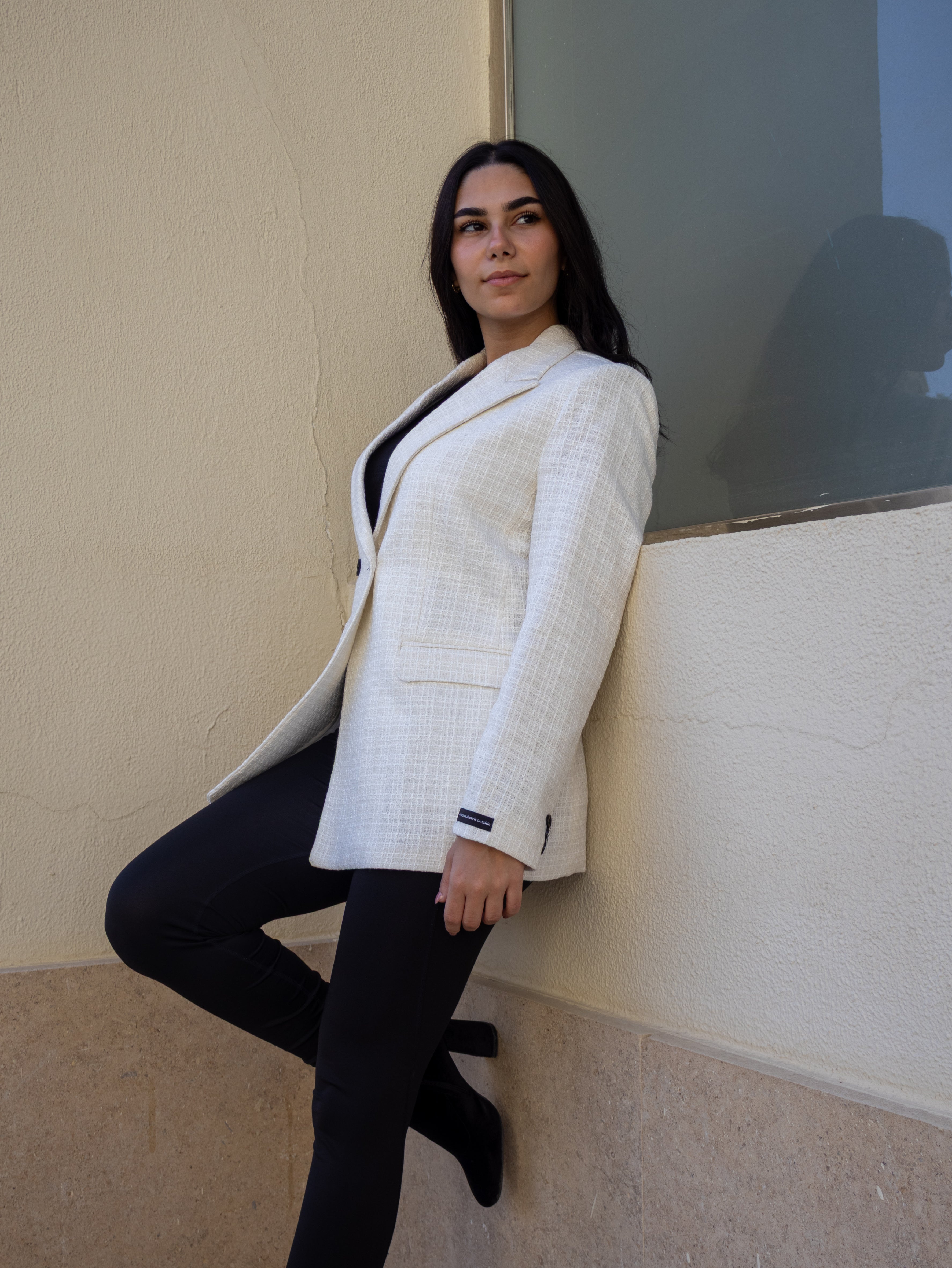 Soft & Timeless — A White Tweed Blazer with Effortless Grace.
